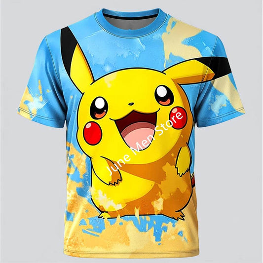 (MINISO)Fashion Kid Anime Pokemon T Shirt 3D MenTshirt Children T-shirt Summer Pikachu Oversized T-shirt For Men Clothing Tshirt