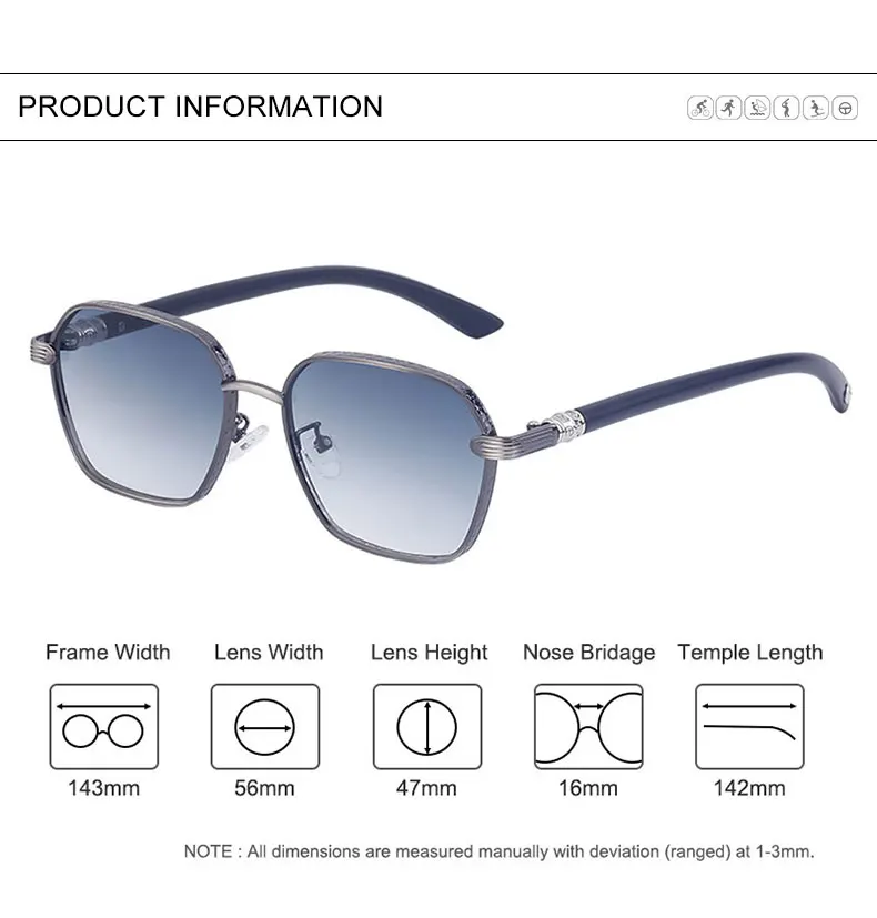 Gafas de sol cuadradas vintage para hombres y mujeres nuevas en gafas de sol de metal Gafas de sol con montura de tendencia masculina