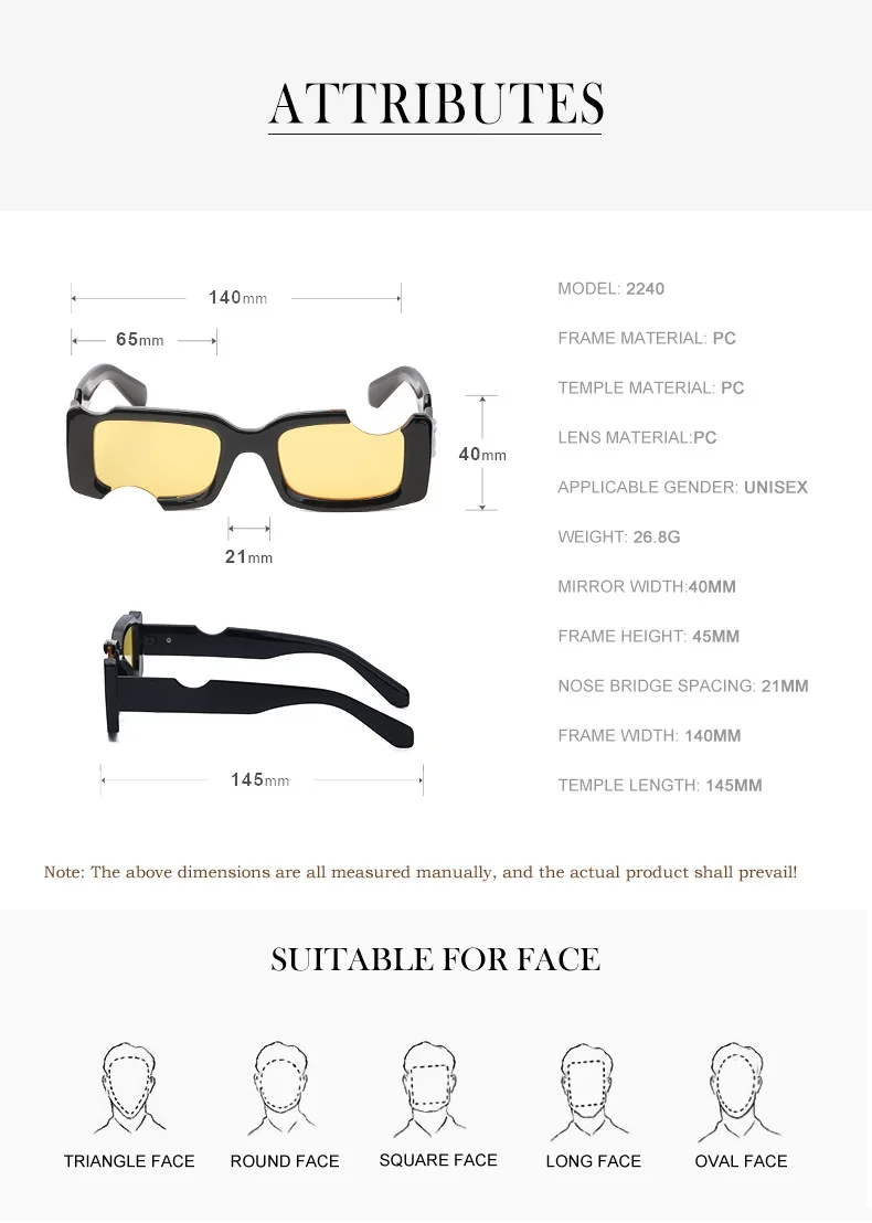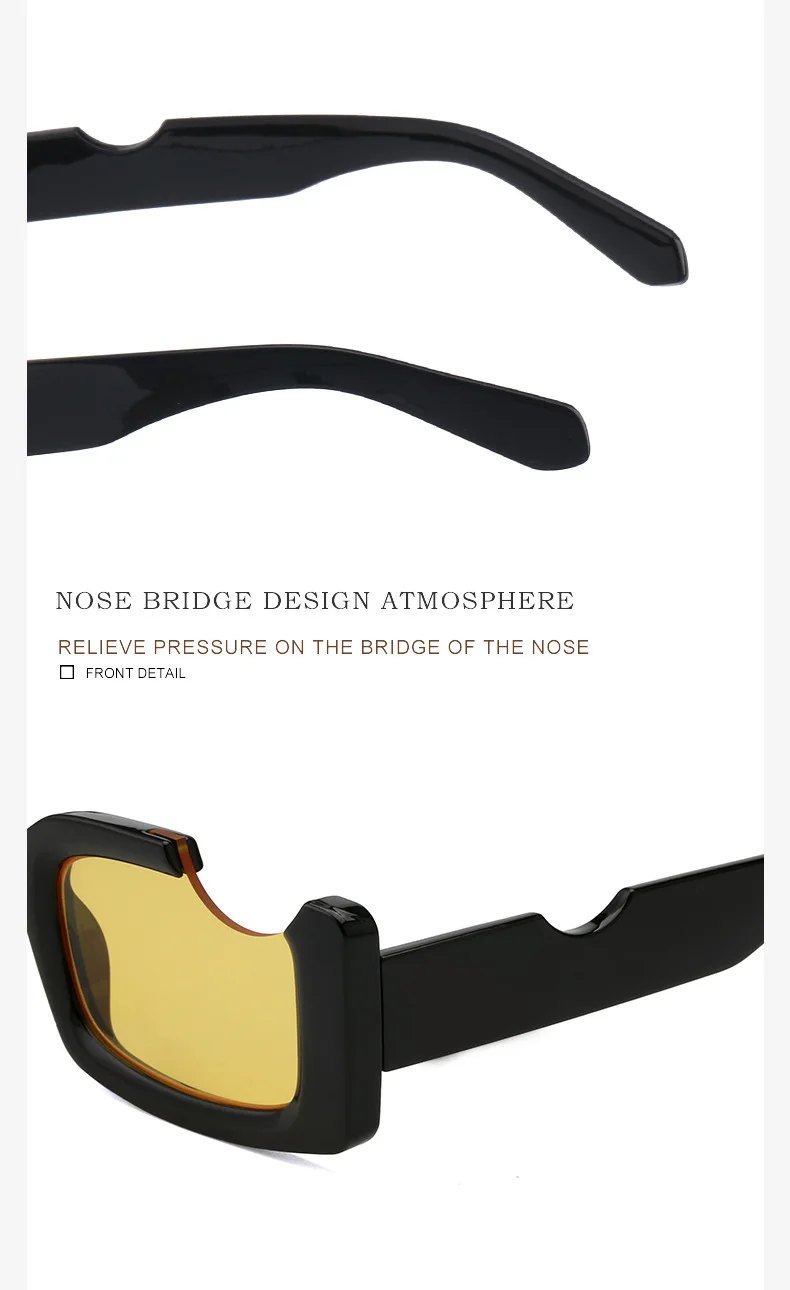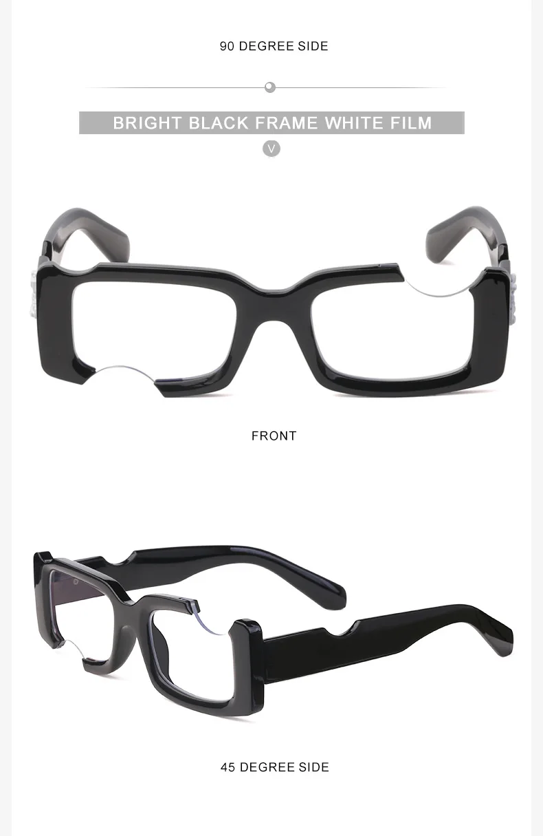 Gafas de sol cuadradas de Hip Hop para mujer y hombre, diseño de agujero de muesca, gafas de sol blancas, gafas azules Vintage con protección UV