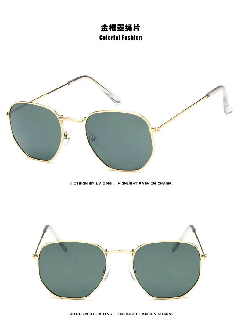 Lunettes de soleil hexagone lunettes de soleil femmes monture en métal lunettes de pêche or thé lunettes lentes de sol hombre okulary UV400