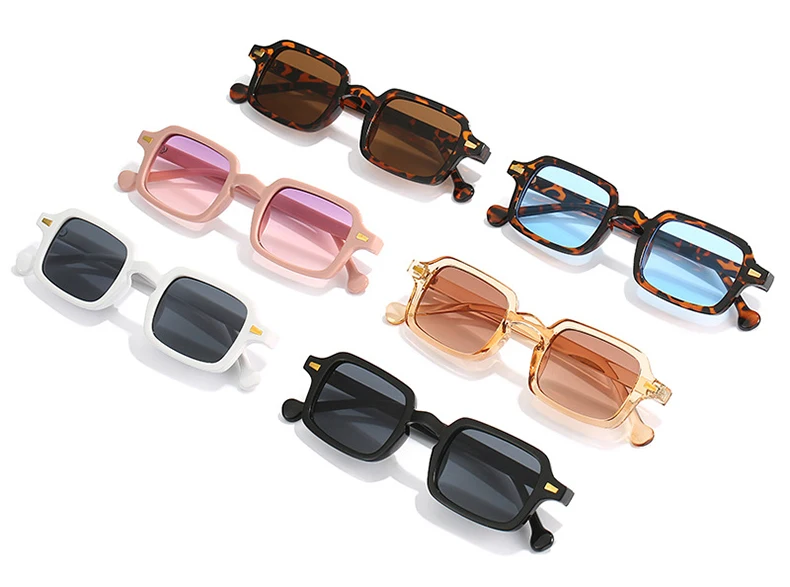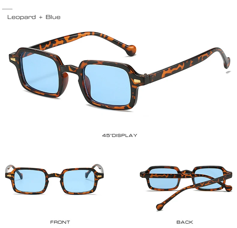 Fashion Square Sunglasses Women Retro Rivets Decoration Gradient Shades UV400 Men Leopard Blue Sun Glasses