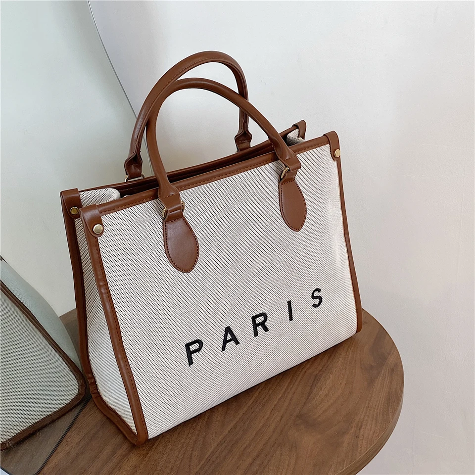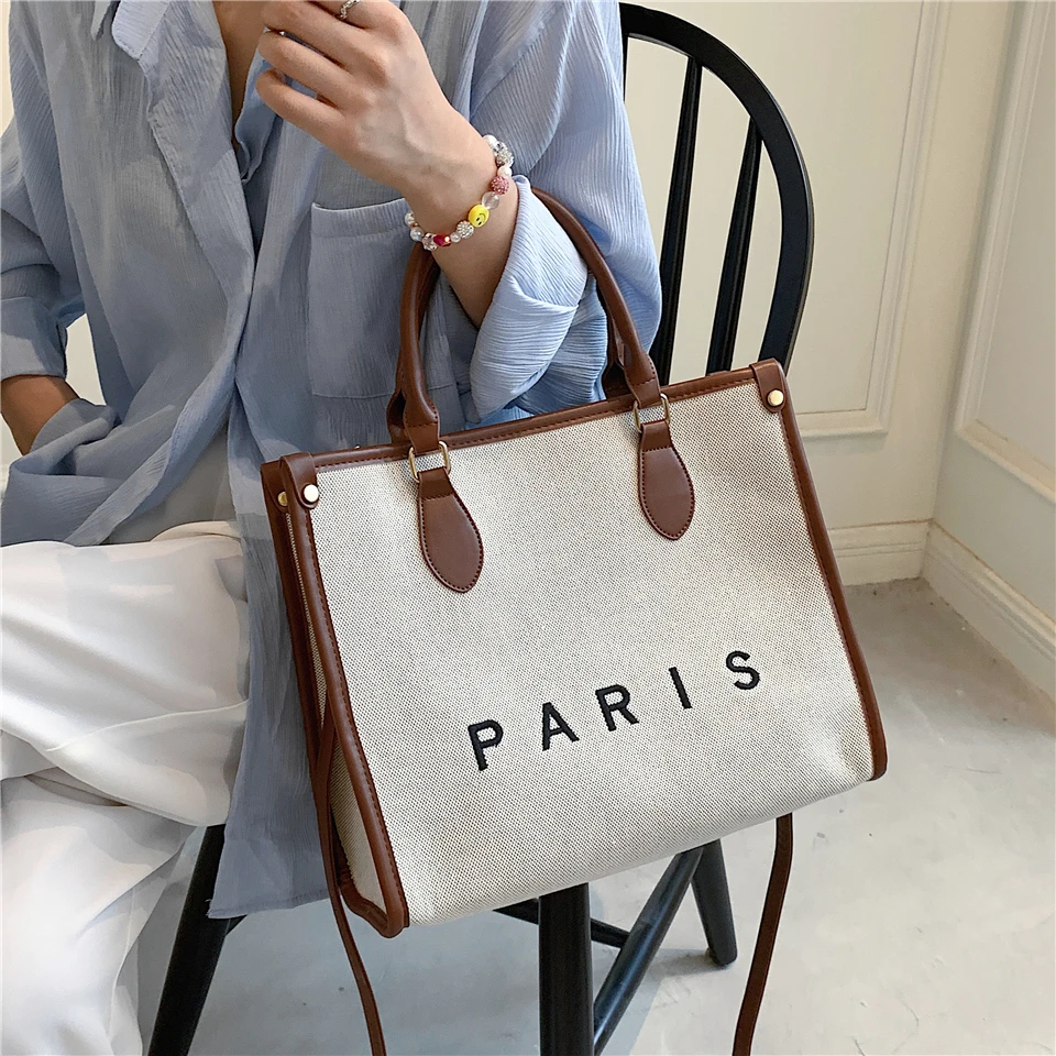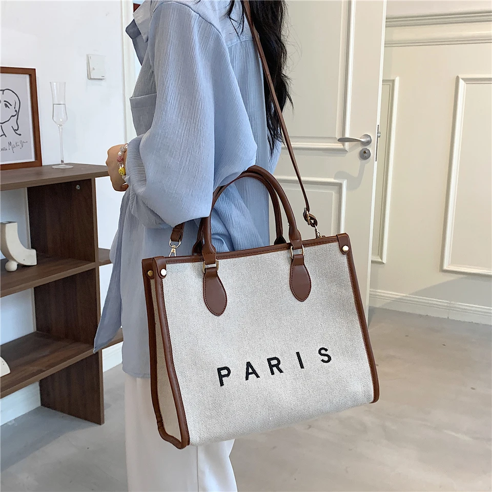 French Style Canvas Large Office Work Tote Handbags For Women Trend Luxury Designer Small Ladies Shoulder Crossbody Bags