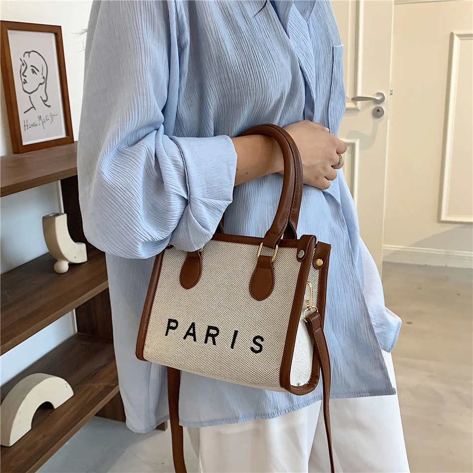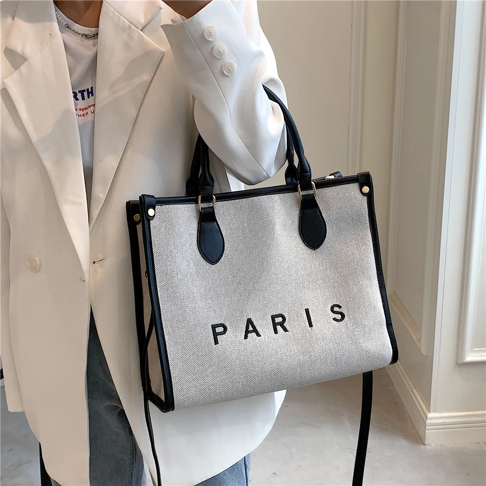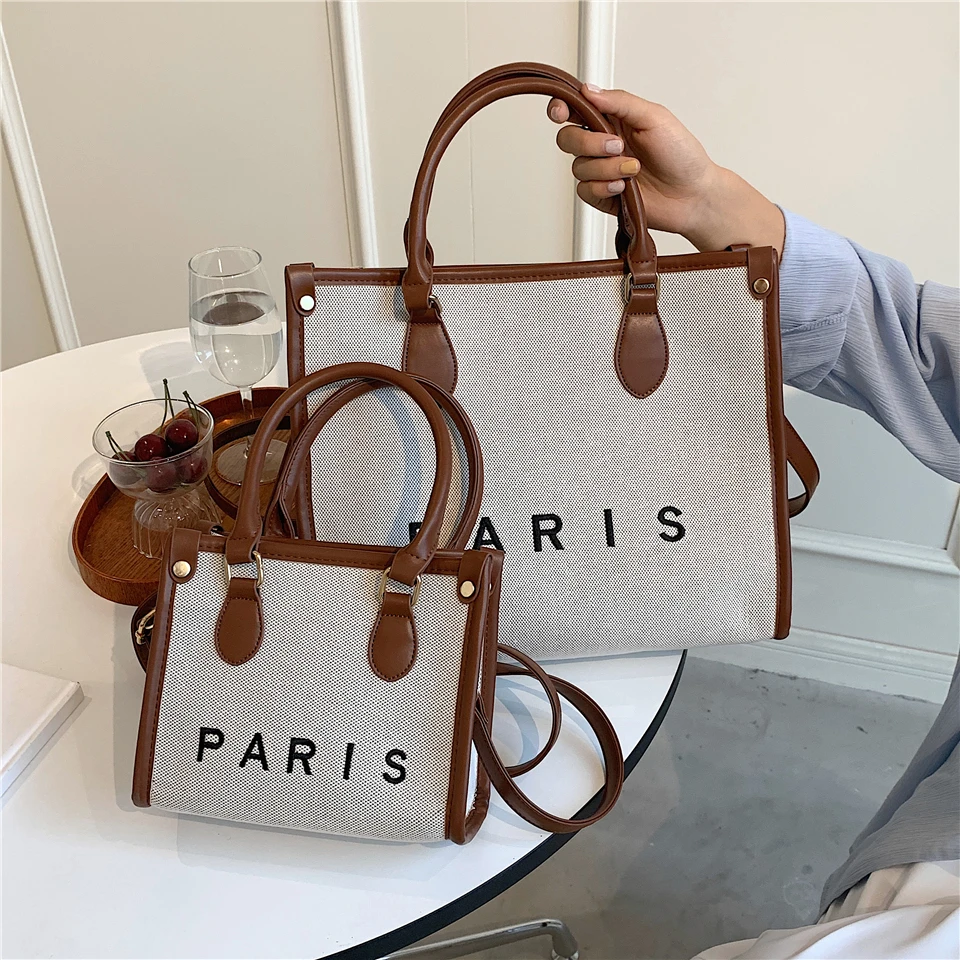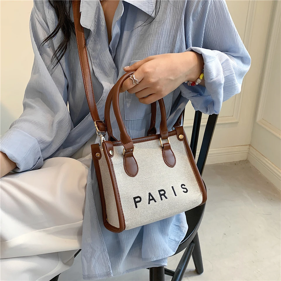 French Style Canvas Large Office Work Tote Handbags For Women Trend Luxury Designer Small Ladies Shoulder Crossbody Bags