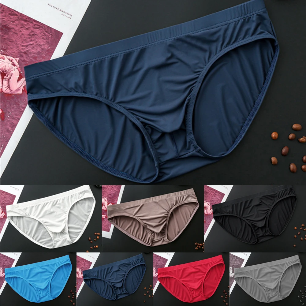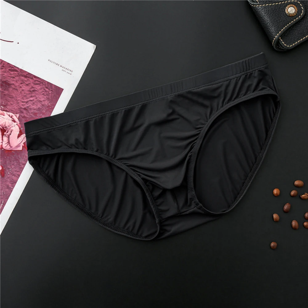 Men's Briefs Sexy Ice Silk U Convex Pouch Underwear Thin Section Breathable Low-Waist Panties Underpants Bikini Slip Homme