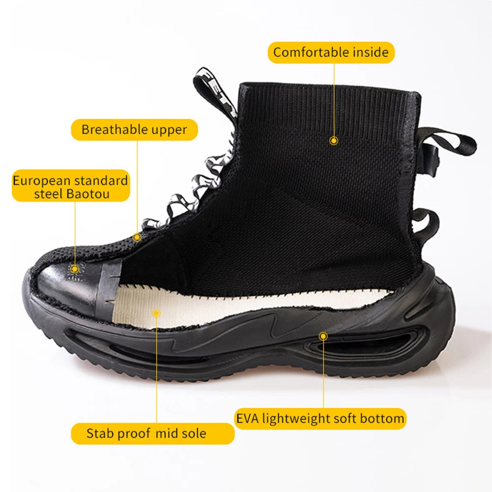 Light Breathable Sneaker For Men Steel Toe Safety Shoes Puncture-Proof Male Boots Work Botas Hombre