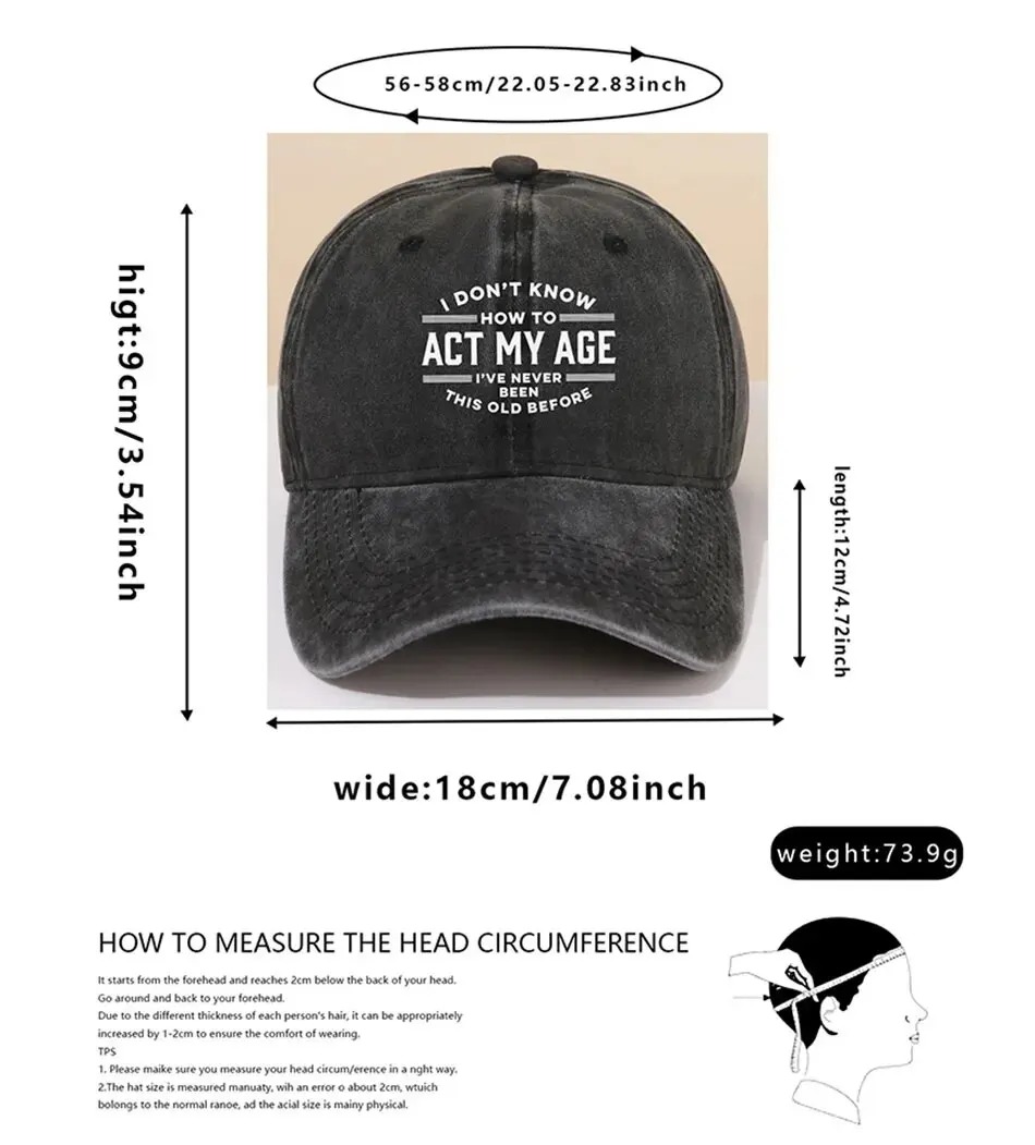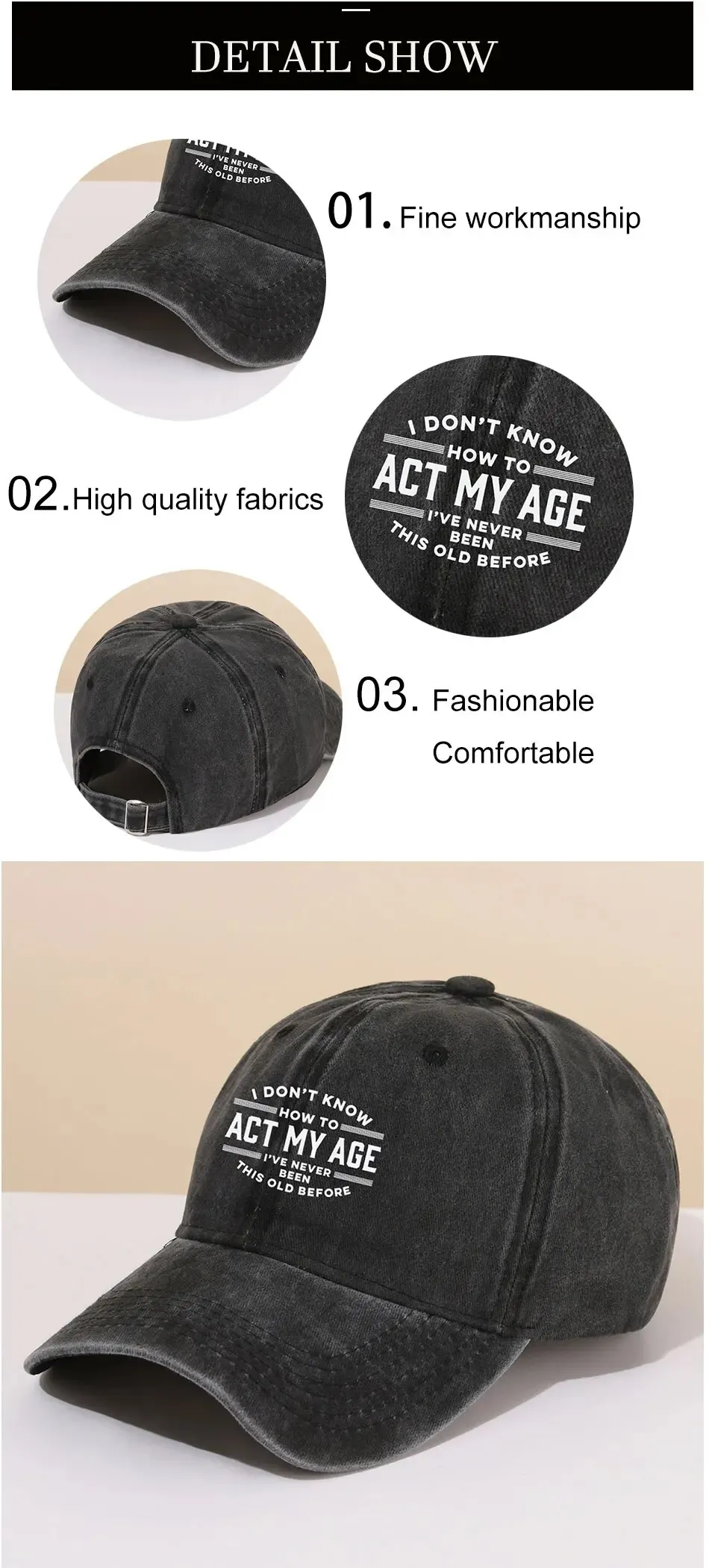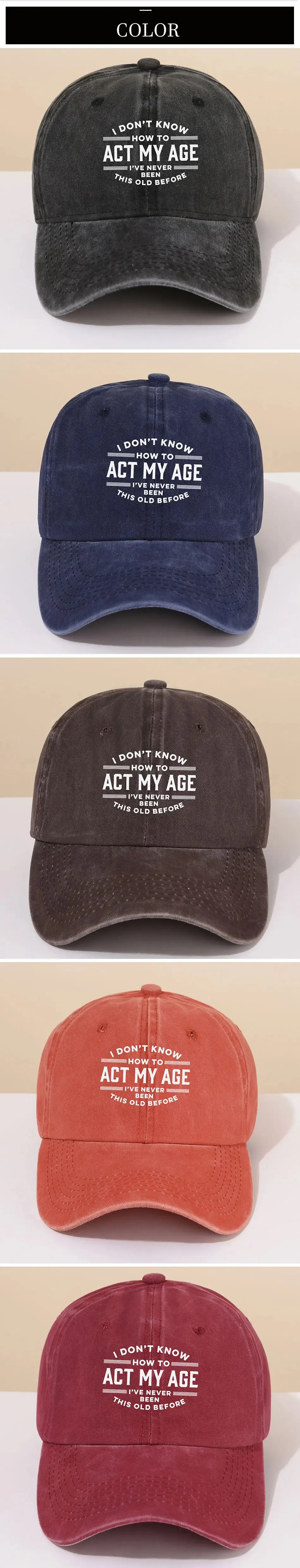 ACT MY AGE Printed Washable Cotton Baseball Hat for Men's Old Vintage Soft Top Duck Tongue Hat for Women