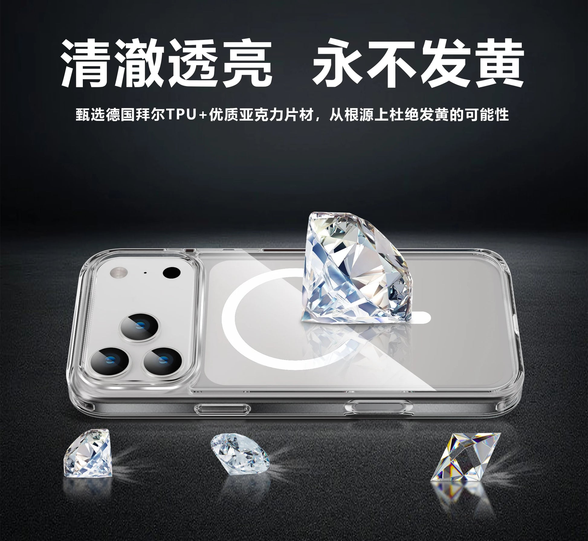 Shockproof Anti Yellow Crystal Acrylic Phone case For iPhone 17AIR 17 17 PRO 17 PRO MAX For Magsafe Strong Magnetic phone Case