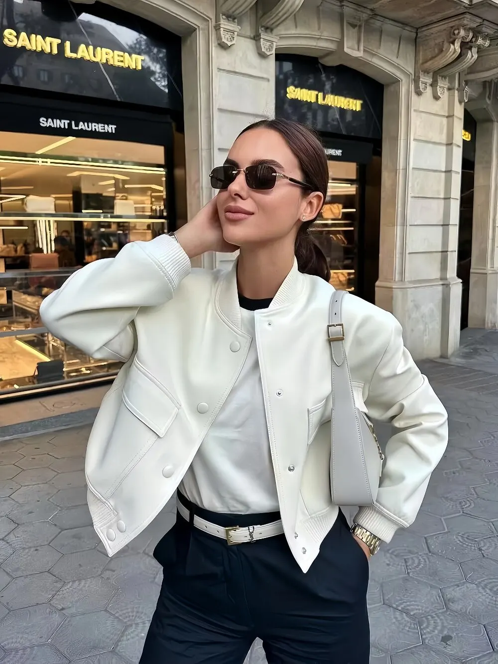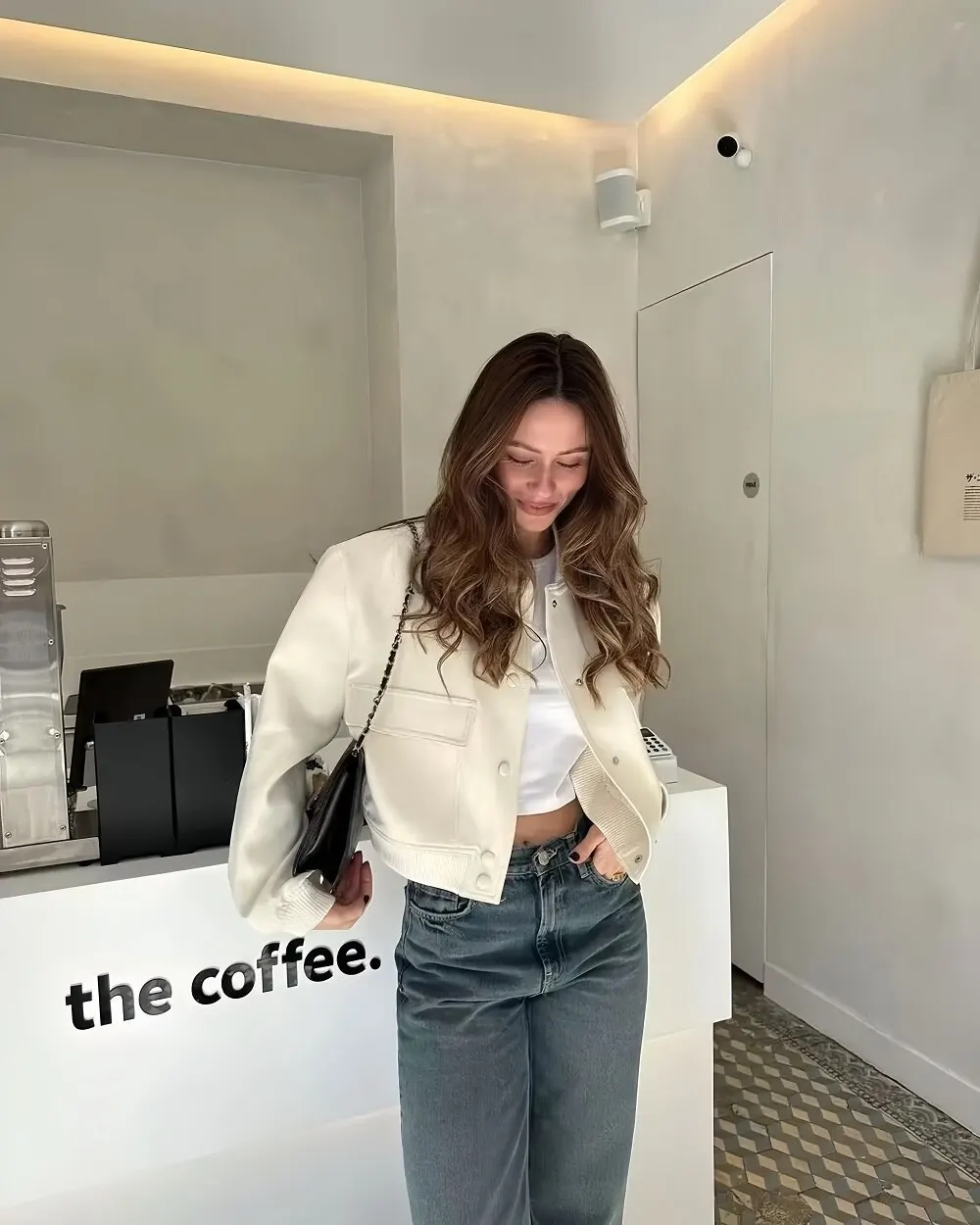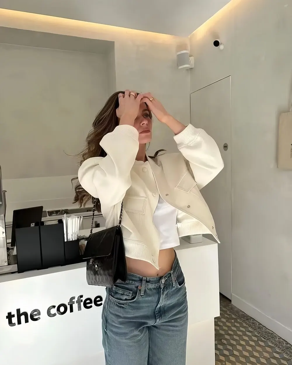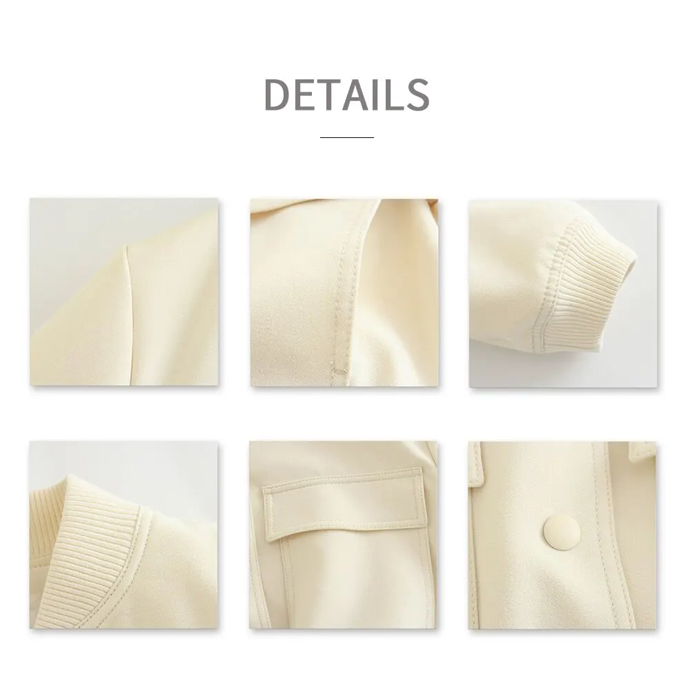 Women Fashion Bomber Jackets with Big Pockets Cropped Spring Amtumn Female Vintage Coat Long Sleeve Front Button Female Outerwea