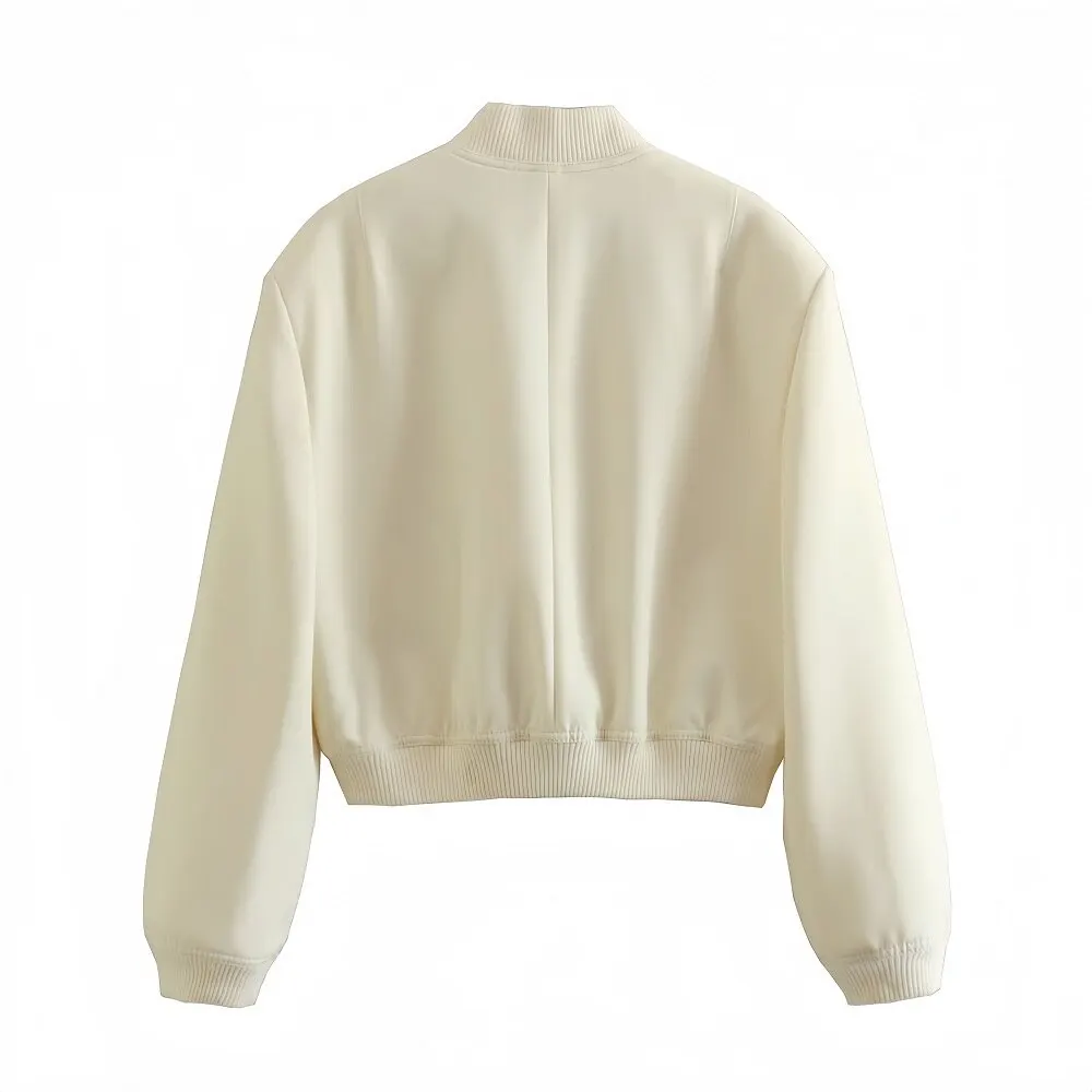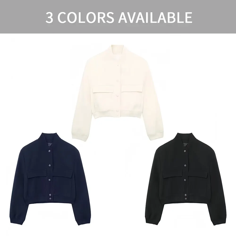 • Feature:solid color,stand collar,long sleeve,elastic hem and cuff,two flap pockets,crop length,button down baseball jacket for women